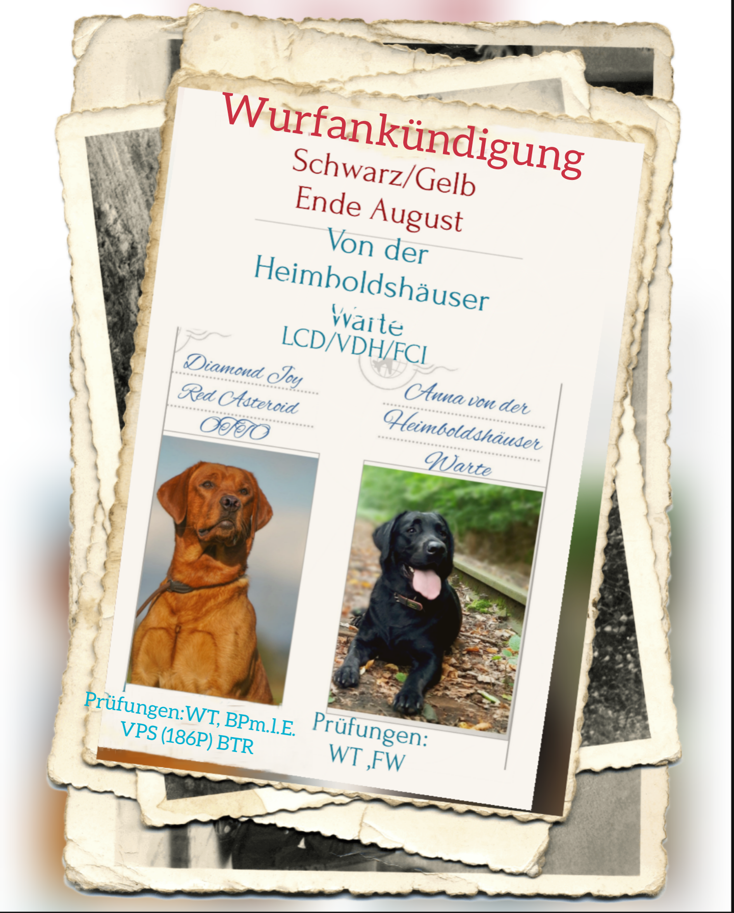 Wenn sie Interesse an einem Welpen dieser Verpaarung haben, setzen sie sich bitte rechtzeitig mit mir in Verbindung.